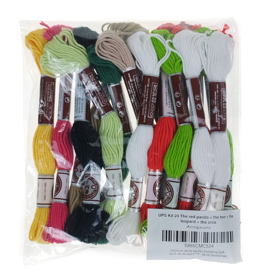 De Agostini creates unique amigurumi kits, combining high-quality DMC yarns with adorable crocheted mascot designs. It’s the perfect choice for people who want to start their handicraft adventure or expand their collection with ready-made materials and instructions.Amigurumi is the Japanese art of crocheting adorable mascots. The kit contains all the materials needed to make: Red panda + hen + leopard + orca. Contents shown in the photo.