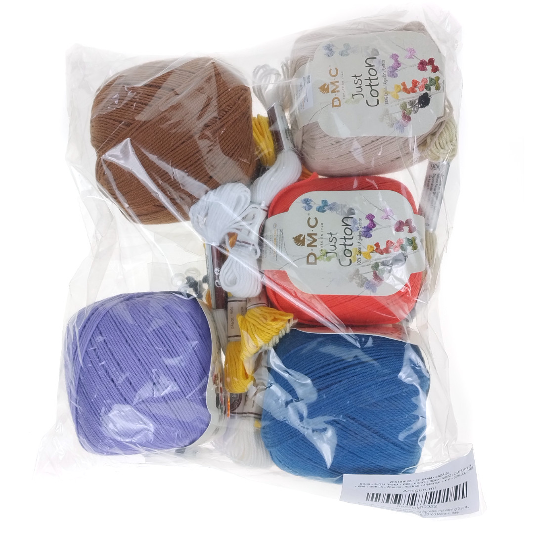 Amigurumi kit – yarns DMC 22 Walrus + Goldfish + Kiwi + Gorilla + Shark