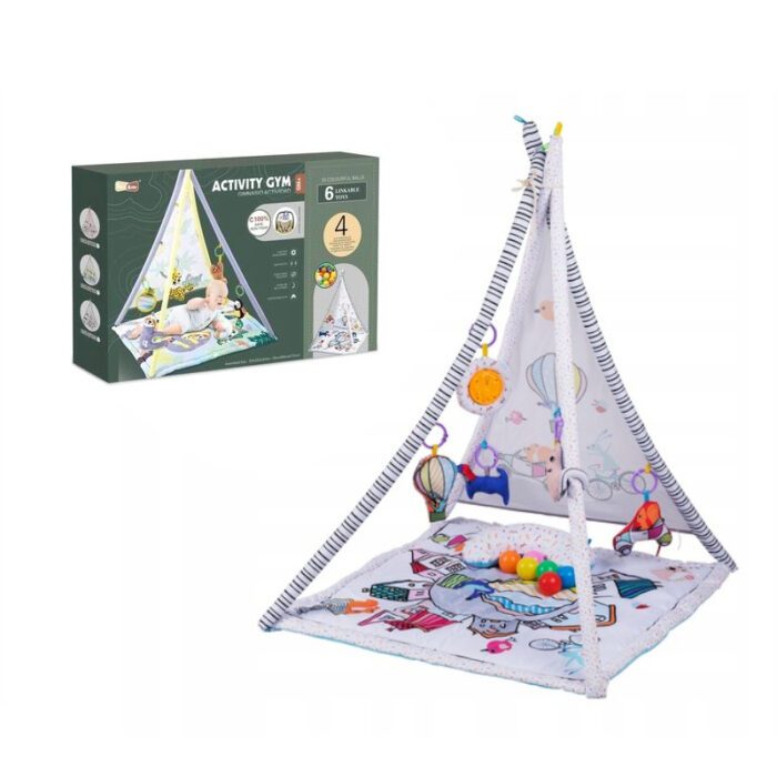 Interactive set stimulating baby’s sense of sight and manual development. The set includes a soft mat, a protective sail, contrast toys, teethers, balls and a safe mirror.