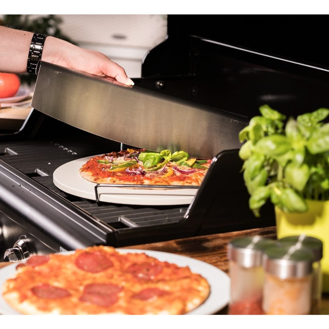 Pizza stone made of natural stone, designed for baking pizza, bread and flour products in the oven and on the grill.