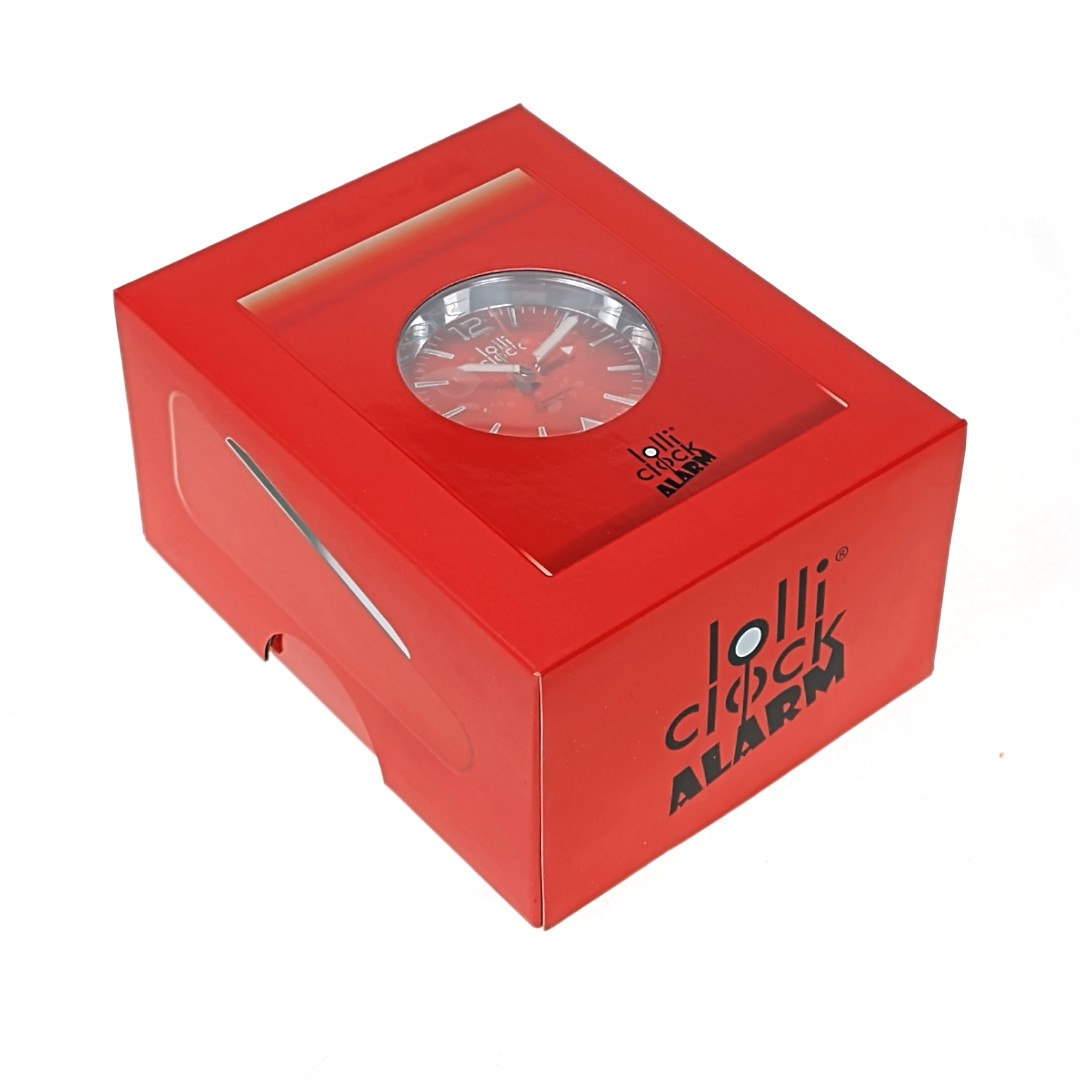 Budzik LOLLICLOCK-ALARM. Materiał: tworzywo sztuczne. Kolor: czerwony. Opis: Bateria: w zestawie. Baterie: 1 x LR44. Opakowanie: pudełko prezentowe.