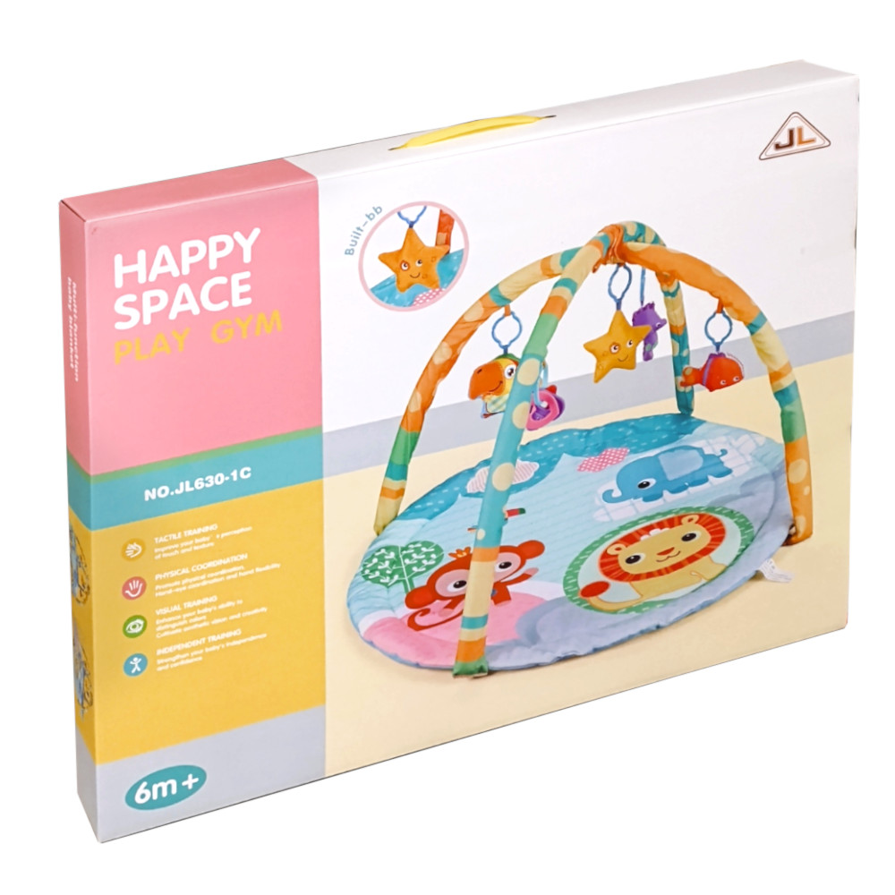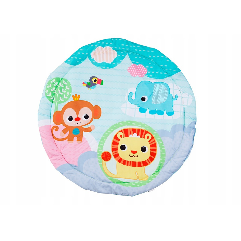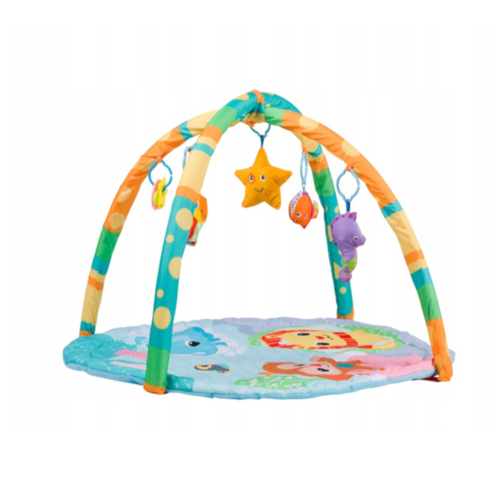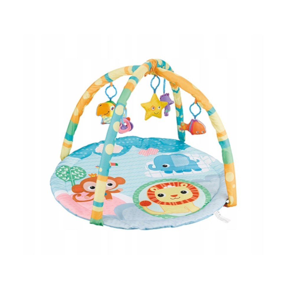 Komfortowa, miękka mata pobudzająca zmysły i zachęcająca dziecko do aktywności ruchowej. W zestawie pałąk z uroczymi zabawkami, wspierający koordynację i zdolności manualne maluszka.