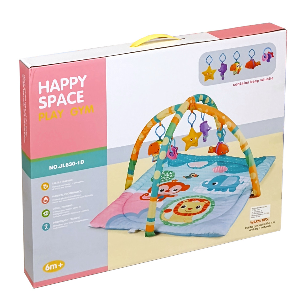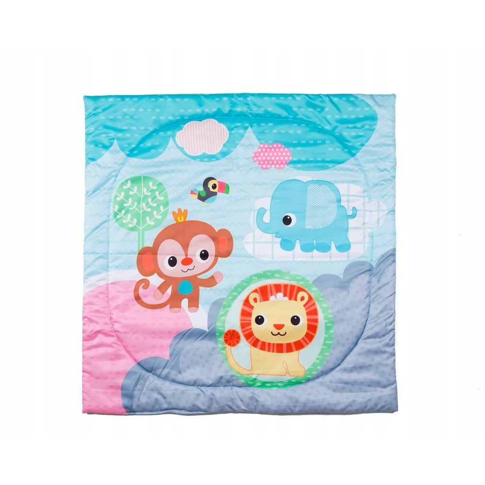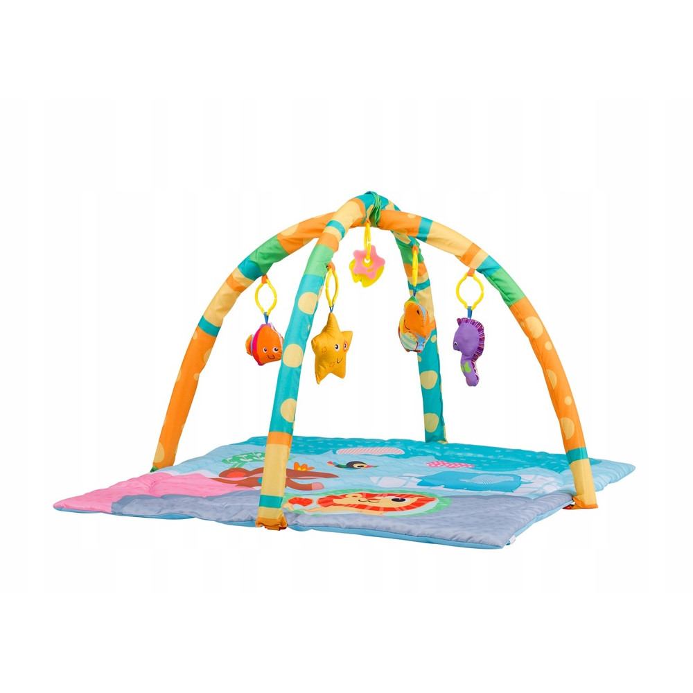 Komfortowa, miękka mata pobudzająca zmysły i zachęcająca dziecko do aktywności ruchowej. W zestawie pałąk z uroczymi zabawkami, wspierający koordynację i zdolności manualne maluszka.