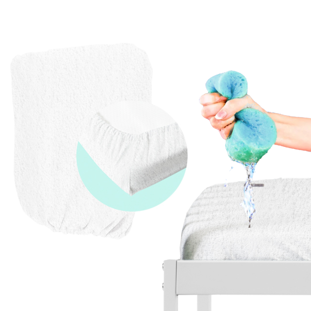 Miękkie, oddychające prześcieradło z organicznej bawełny, skutecznie chroniące materac przed wilgocią. Wygodne zakrycie z elastycznymi gumkami gwarantuje idealne dopasowanie i spokojny sen dziecka.