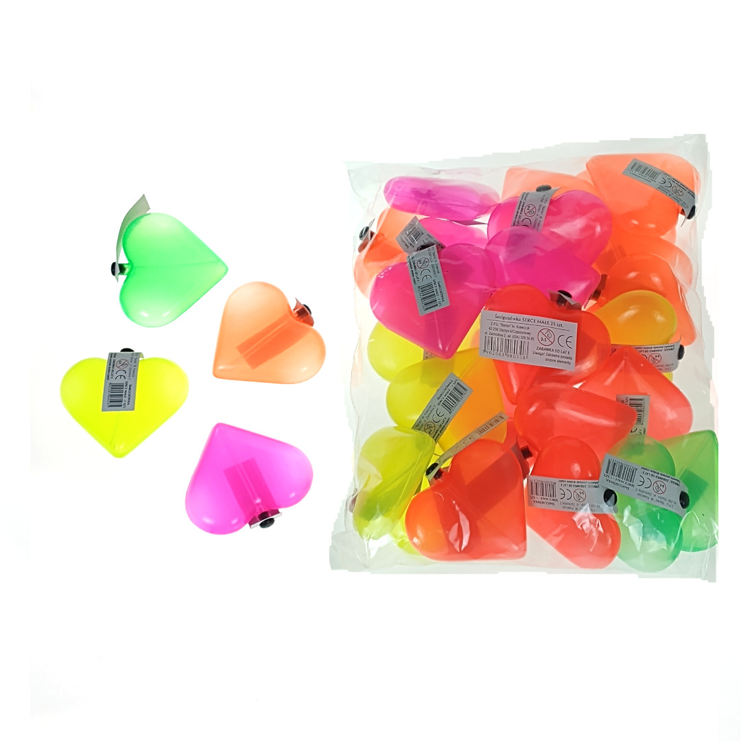 Zestaw 1: Serduszka 7x6x2 cm z wężykiem, mix kolorów 5902003080285 – pakowane po 25 szt.