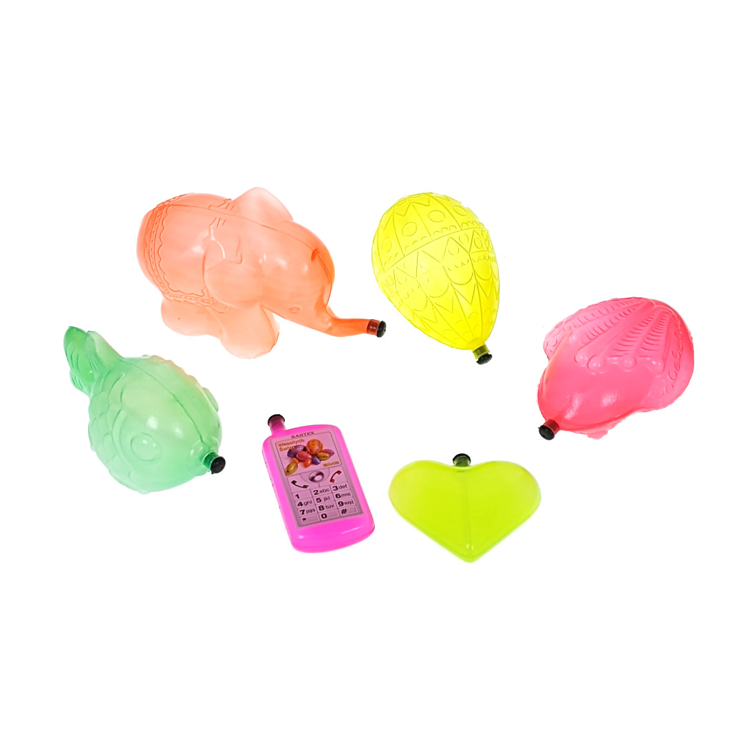 Zestaw 3: Zestaw różnych psikawek – serduszko, telefon, jajko, żabka, słonik, rybka – pakowane po 6 szt.