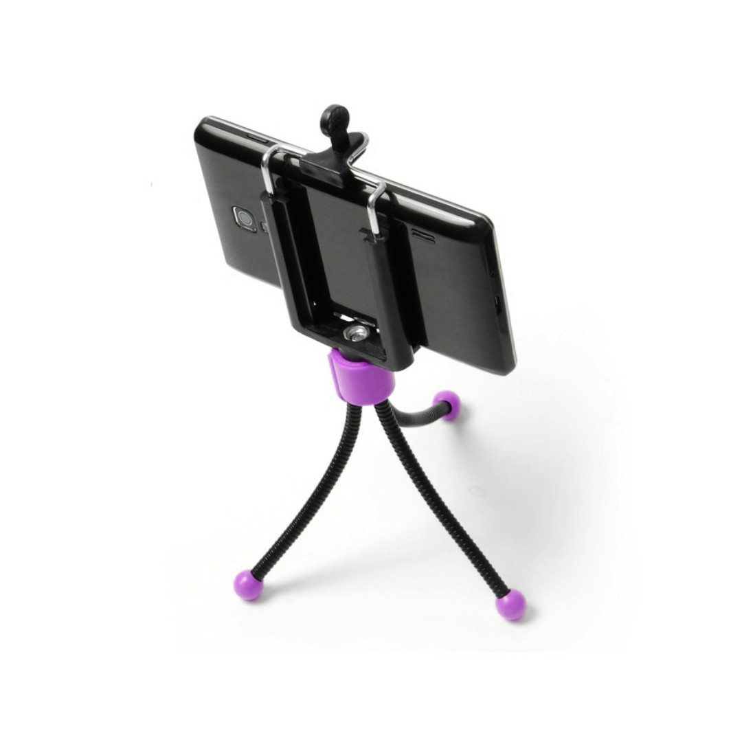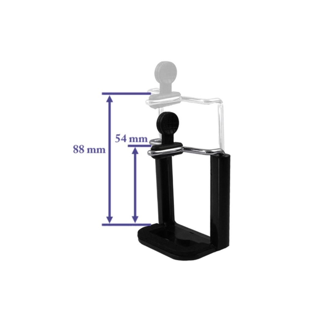 W zestawie uchwyt statywowy do telefonu / smartfona. Minimalna szerokość telefonu: 54 mm. Maksymalna szerokość telefonu: 88 mm. Metalowy gwint statywowy: 1/4 cala. Uchwyt wyłożony gumą antypoślizgową.