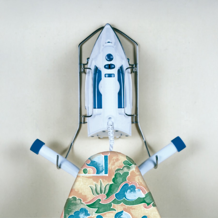 Stojak ścienny metalowy chrom na żelazko i deskę. Zaprojektowane we Włoszech. Opakowanie: 12x48x22 cm.