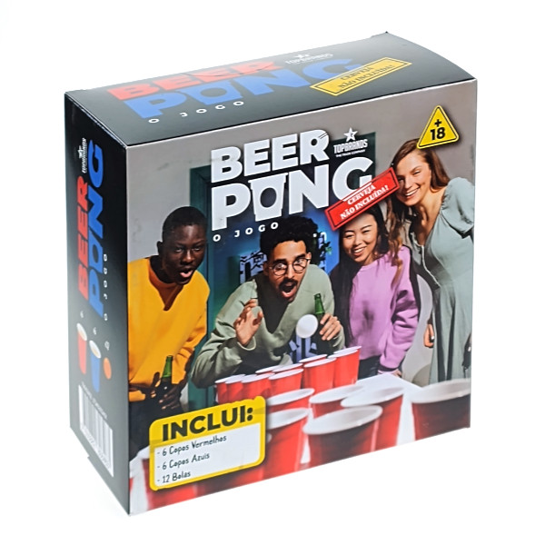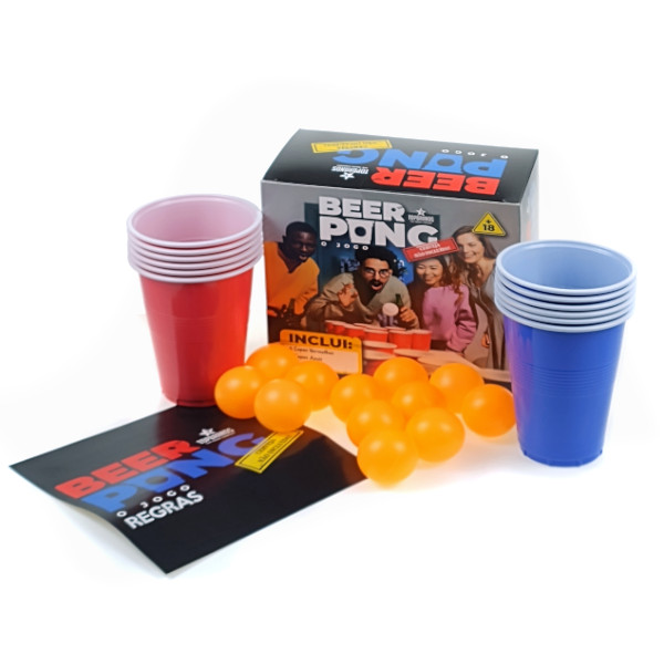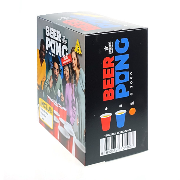 – Zestaw Beer Pong: 12 kubków (6 czerwonych, 6 niebieskich) + 12 piłek. Kultowa gra alko***a. Opakowanie: pudełko. Producent: TOPBRANDS, LDA, NIF: 514159910, PORTUGAL.
